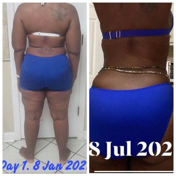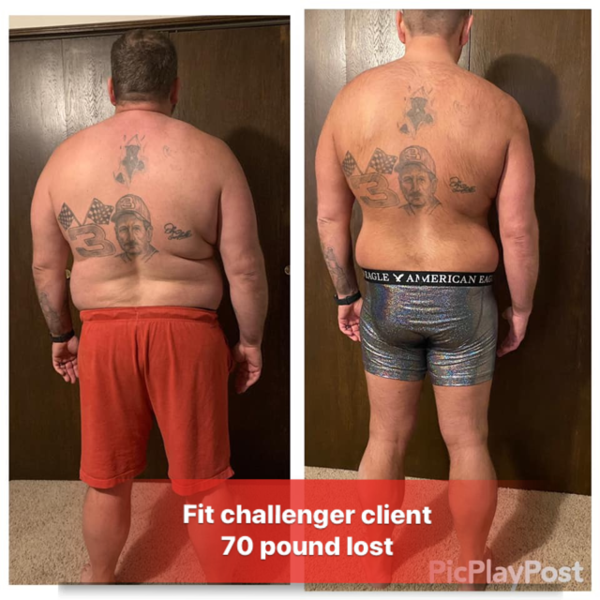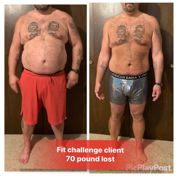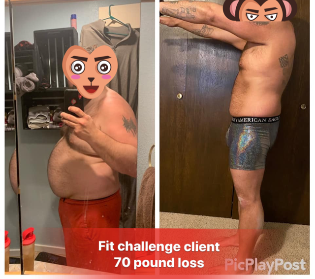 Past Fit Challenges pictures will be different for each individual based on their true in engagement into the program. All have lost weight, but more important is their body lost INCHES!. From midsection being reduced, skin tightening, overall body toning, back folds disappearing, and muscle gains!